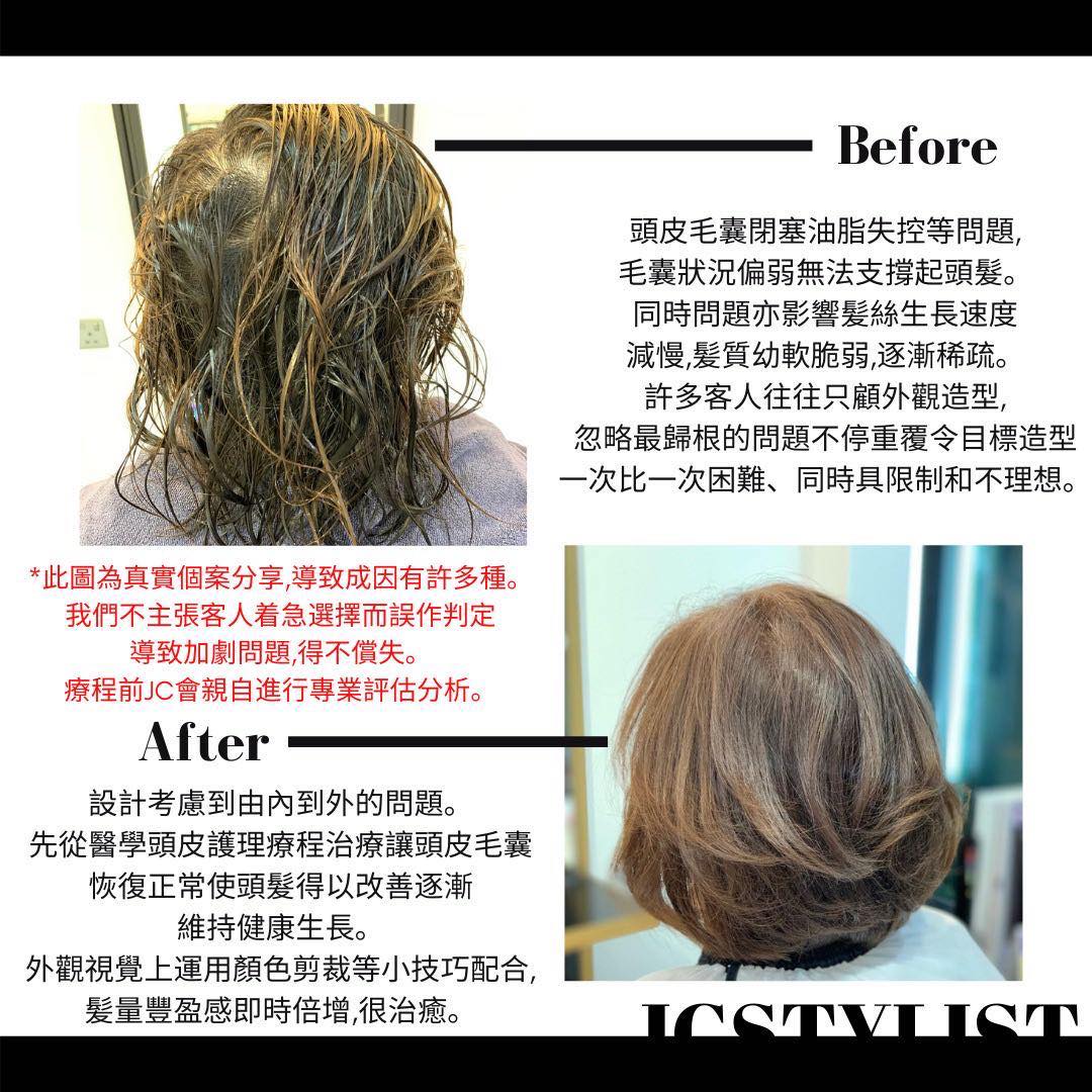 我們一直堅持專研醫學融入髮型方案,引領醫美髮型新趨勢。為顧客解決頭髮、頭皮、任何髮型範疇的疑難。建立最理想合適髮型與狀態。JCSTYLIST 至今已成為超過99%客户心目中之最滿意超水凖服務「醫學髮型專家」。著名經典療程包括:醫學髮質矯型療程、醫學防脫髮頭皮護理療程、電髮根改造技術。有效改善典型天生/後天問題,絕無副作用及符合安全規格認可。